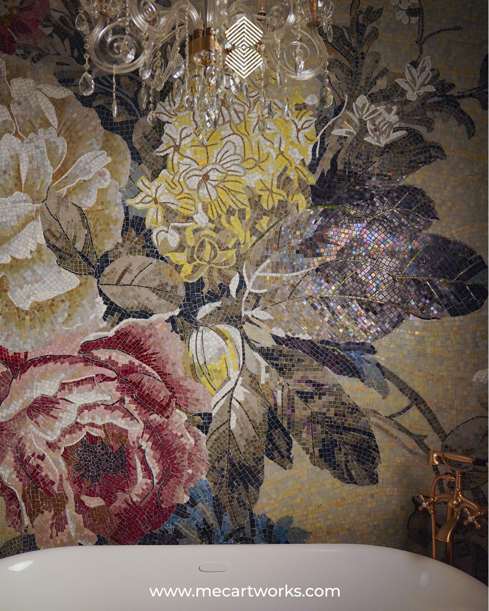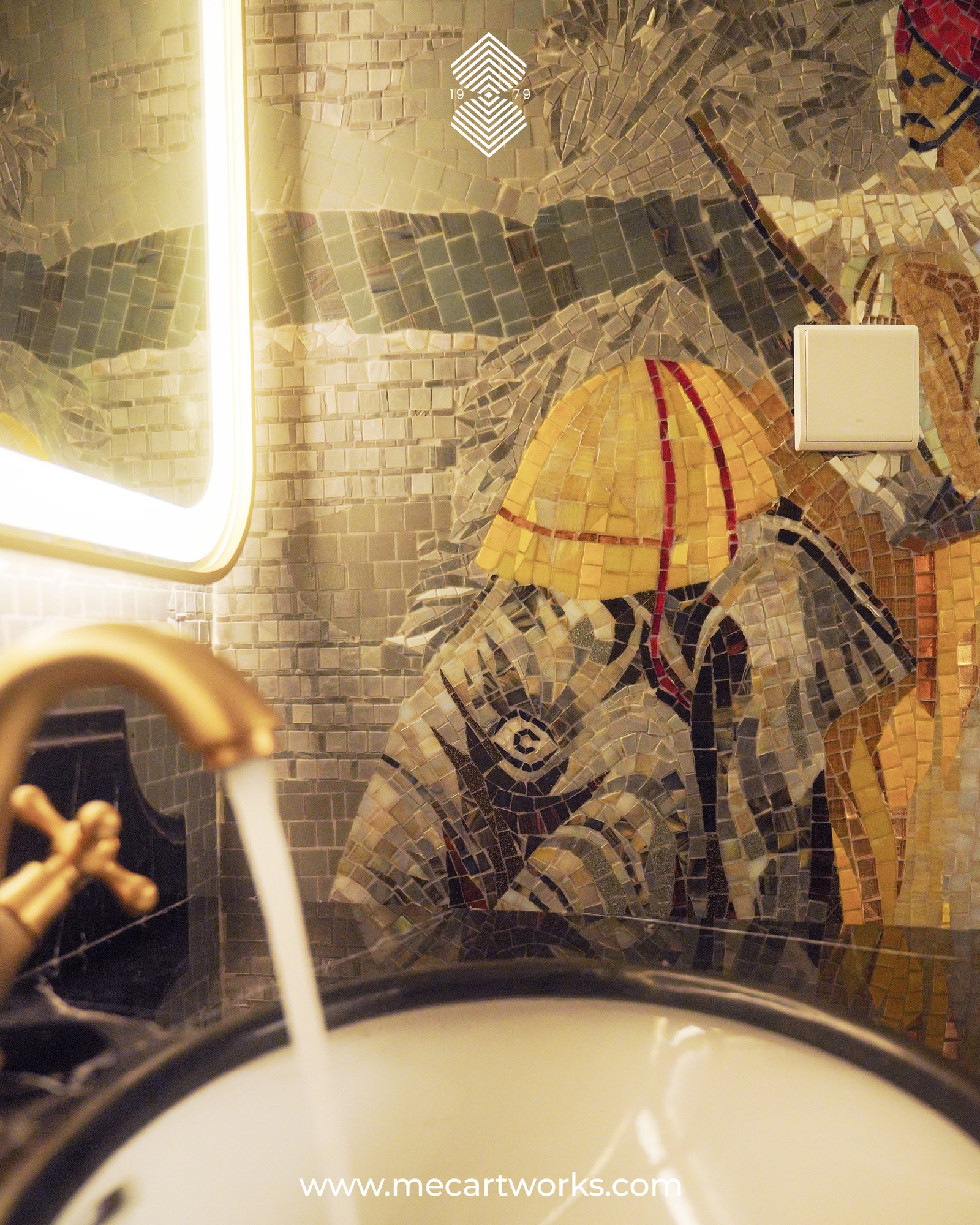 Rather than letting tiling serve as a mere backdrop, our design team positioned each mosaic mural as the room’s primary protagonist, turning the bathroom into a space that tells a story.