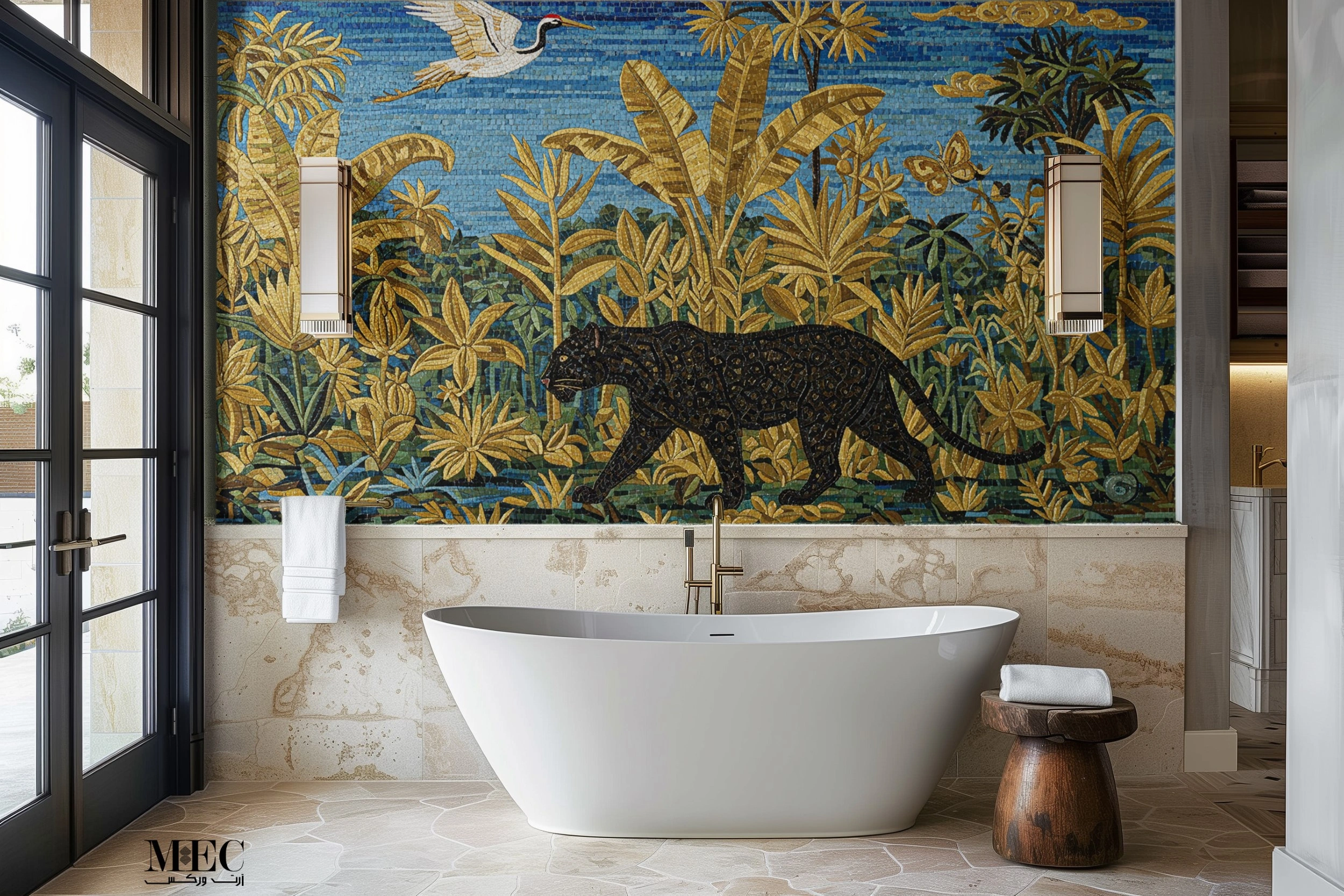 - Full-scene mosaic mural featuring flora, fauna, and wildlife in storytelling motion.